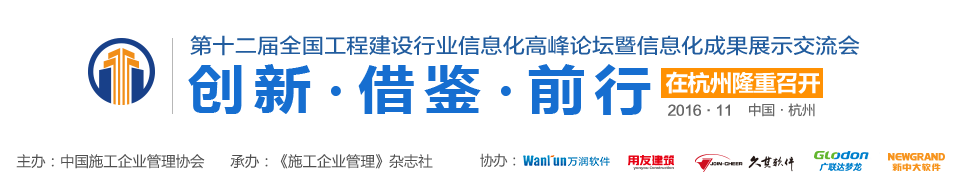 【本網訊】2016年11月24日~25日,由中國施工企業管理協會主辦、《施工企業管理》雜志社承辦的“第十二屆全國工程建設行業信息化高峰論壇暨信息化成果展示交流會”在杭州隆重召開。論壇以“創新?借鑒?前行”為主題,深入探討了在國家“創新驅動”戰略的指引下,如何充分借鑒行業內外成功經驗與優秀成果,立足行業特點和發展實際,堅定信心,把握信息化主動權,發揮后發優勢,加快“兩化”融合,在創新實踐中求突破、見實效,推動行業信息化不斷取得新…