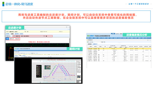 對于總進度計劃及期間計劃,企業項目管理系統支持用project的橫道圖來編制以及使用斑馬進度編制的網絡圖兩種計劃編制方式。也就是說即使不安裝斑馬進度工具,在企業項目管理平臺中也可以直接查看到用斑馬進度編制的網絡圖以及前鋒線,實現對進度的可視化管理。同時,企業項目管理系統還會自動傳遞節點工期數據,因此,不管是用Project還是用斑馬進度編制的總進度計劃,施工企業在進行企業級的進度偏差情況分析中,可以看到各個項目的進度偏差情況,實現對多項目的進度管控。