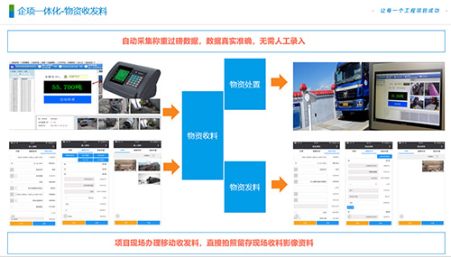 企項一體化自動采集稱重過磅數據,確保數據真實準確,無需人工錄入,項目現場辦理移動收發料,直接拍照留存現場收料影像資料,提高了物料驗收效率以及數據采集效率。對物資管理來說,項目人員工作量最大的就是日常收發料管理,傳統的手工填寫收料單和發料單的方式很難實現日清月結的精細化管理。而企項一體化可以實現智能的物資收發料,可以自動采集鋼筋、混凝土等稱重材料的過磅數據來辦理收料,同時不允許修改稱重過磅的收料數據,避免了虛假驗收。對一些非稱重材料,可以在項目現場直接利用手機移動端拍人、拍貨、拍車留存現場收料影視資料,直接實現移動收發料,另外,收貨材料可以直接從合同材料中進行選擇,也可以直接掃描采購訂單的二維碼,系統自動把采購訂單數量帶出來,然后根據實際到貨的數量微調一下,進行簡單的保存、提交操作即可,當天單據就能夠錄入完成,不僅極大的提高了數據的采集效率,而且還有力的保障了數據的及時錄入。