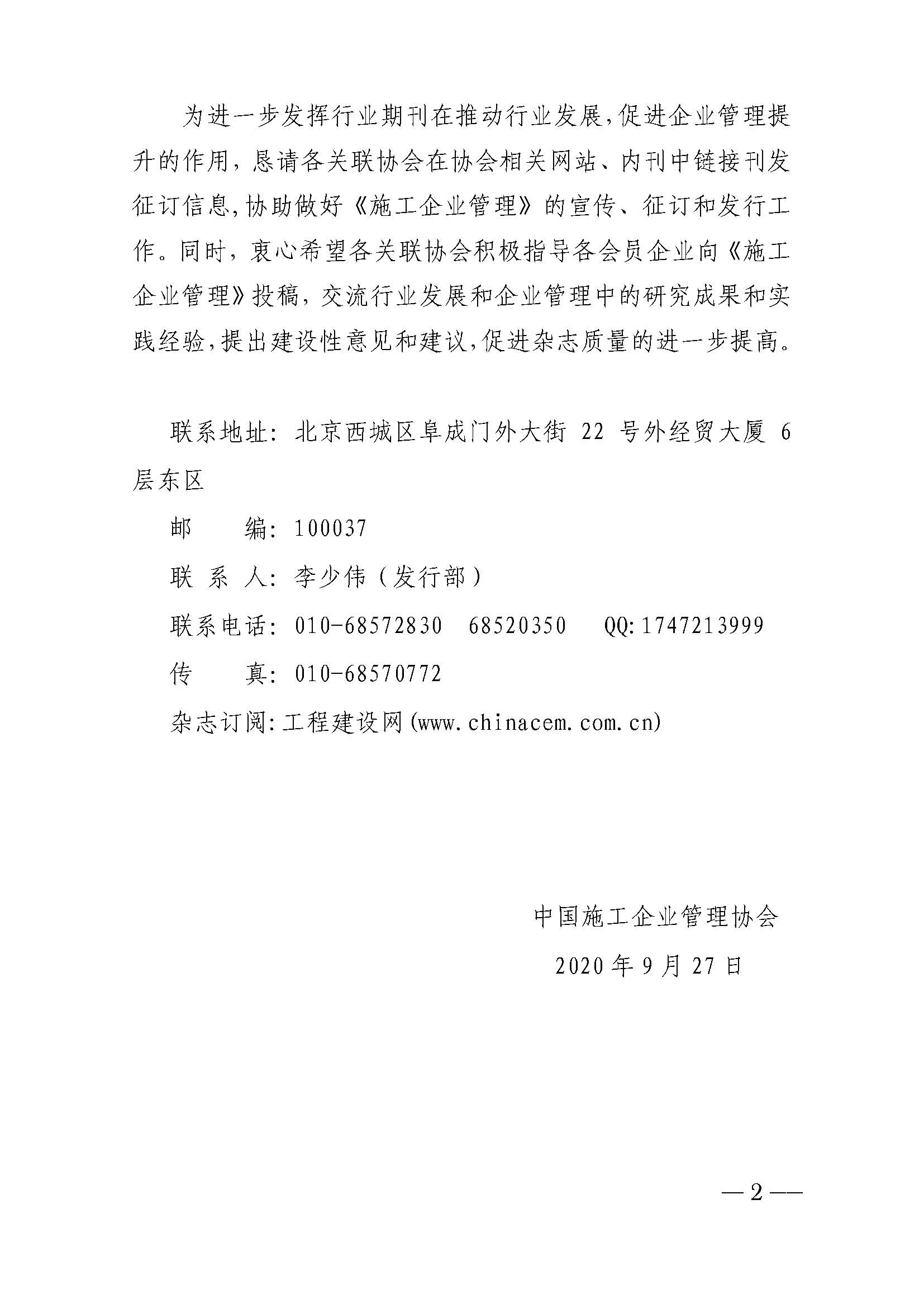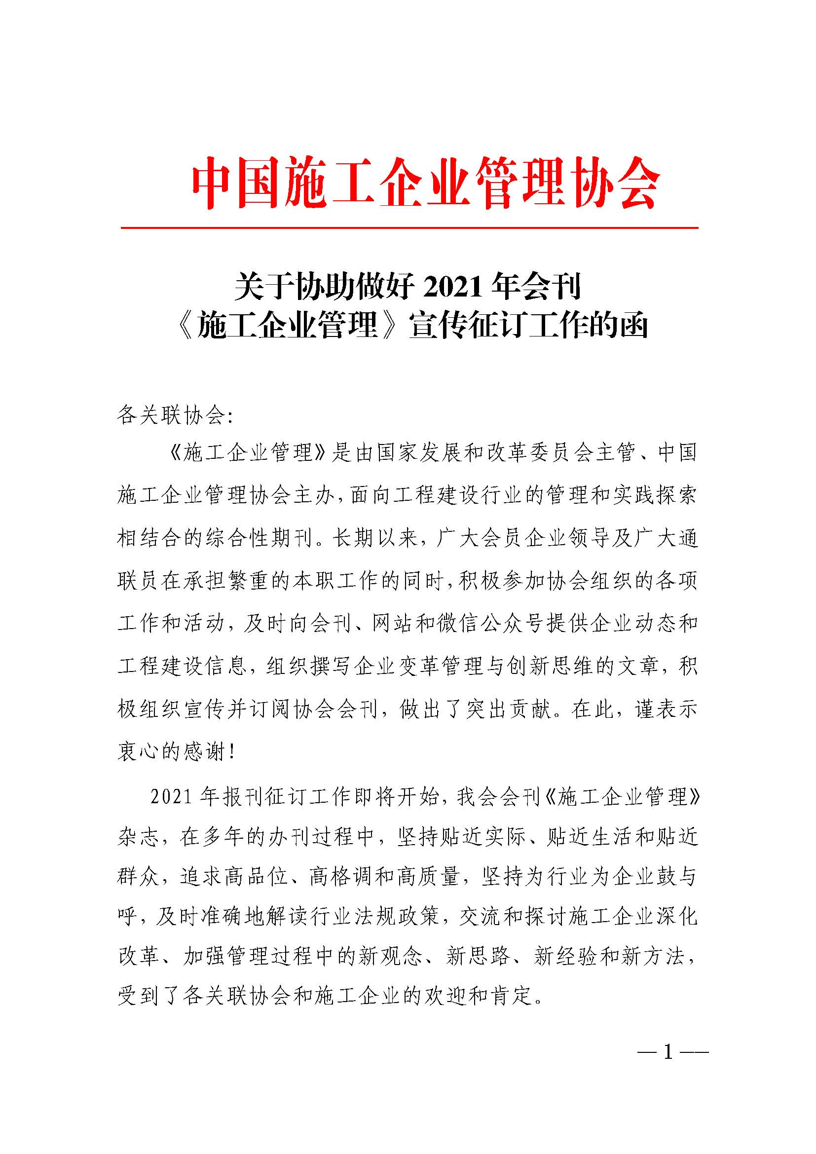 關于協助做好2021年會刊《施工企業管理》宣傳征訂工作的函