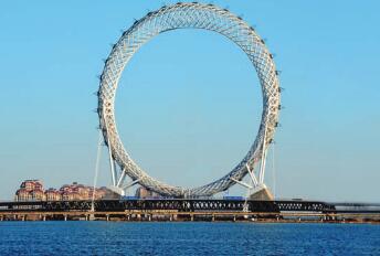 為求特色和創(chuàng)新,設(shè)計(jì)師將摩天輪設(shè)計(jì)為無(wú)軸式摩天輪,雖然造型優(yōu)美,但是施工難度和工藝卻大大增加。