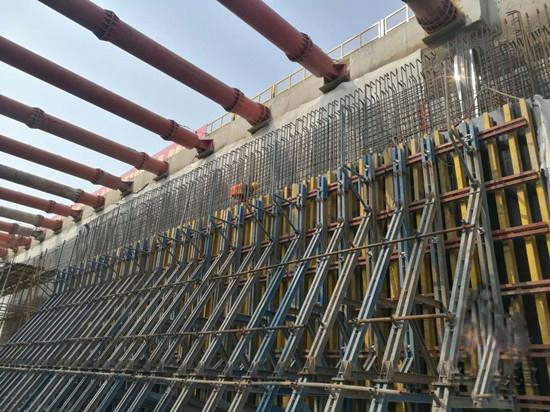 “采用三角大鋼膜固定模板,隧道一側(cè)一次就能澆筑混凝土19.5米,兩側(cè)混凝土澆筑可同時(shí)進(jìn)行,加起來就是39米。”在明挖隧道施工現(xiàn)場,順著楊洪岳手指的方向看過去,一排排固若金湯的三角形鋼筋模板整齊的矗立在墻根。