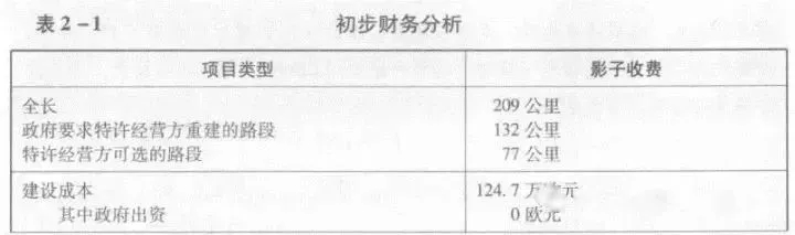 政府將現(xiàn)有道路移交給特許經(jīng)營方,以體現(xiàn)實物投人支持;特許經(jīng)營方負責道路修繕、升級(根據(jù)提髙行車安全性的需要,可以修建新的立體交叉道和立交橋)、拓寬(用來容納未來可能的交通流量的增加),并配備設(shè)施以減少項目造成的環(huán)境污染;特許經(jīng)營方負責項目完工后的運營和維護;項目采用影子收費方式,不直接向通行車輛收費。
