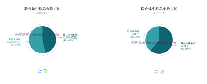 1. 根據(jù)明樹數(shù)據(jù)統(tǒng)計(jì)資料,聯(lián)合體中標(biāo)金額累計(jì)達(dá)50080.5億元,占比高達(dá)53.82%;聯(lián)合體中標(biāo)數(shù)量2447個(gè),占比39.21%。平均單個(gè)項(xiàng)目中標(biāo)金額20.47億元。