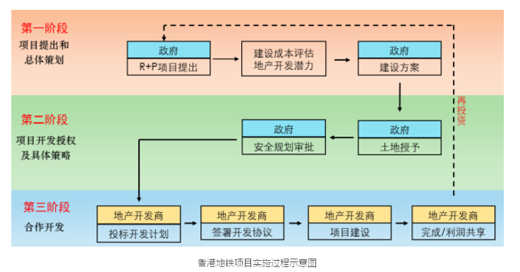 第一個階段,是項目的提出和總體策劃。這個R+P項目,由政府提出,明確這個項目要實施,然后由港鐵對沿線土地進行整體評估,政府允許地鐵公司根據成本效益原則,對線位站位進行選擇、調整。