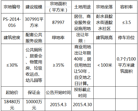3.開發時限:中標后六個月內物業開發項目開工實施,并在3年內完成;每年完成投資額不低于2. 5億元。其中,第一年須達到預售條件。