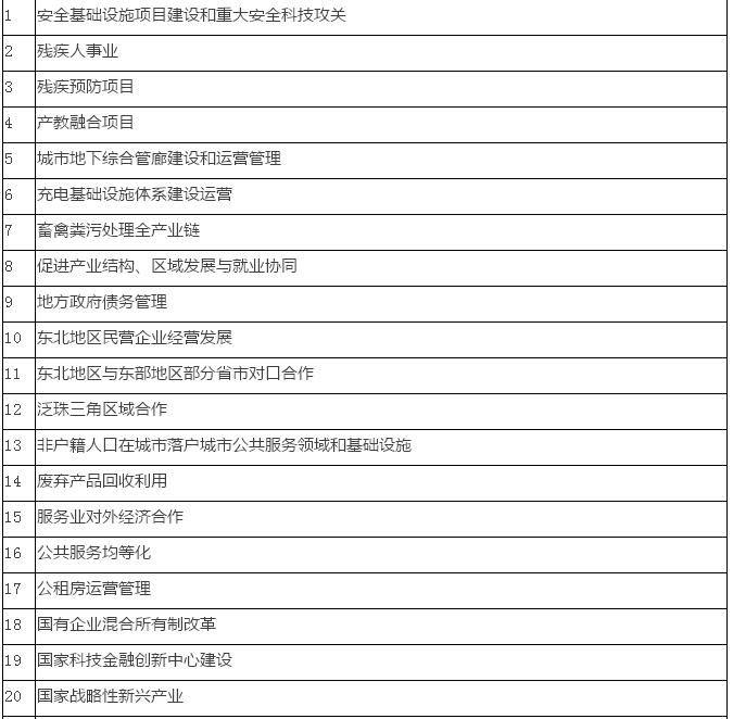 本人先梳理了2014年到2017年國務院出臺的涉及PPP的近百篇文件,后續將對國家各部委出對臺的規范性文件進行梳理。現將對國務院文件梳理的結果分享給大家。國務院文件中明文提到引導、支持、鼓勵或試點PPP模式的具體領域和事項可歸納為72項,具體情況見下表。