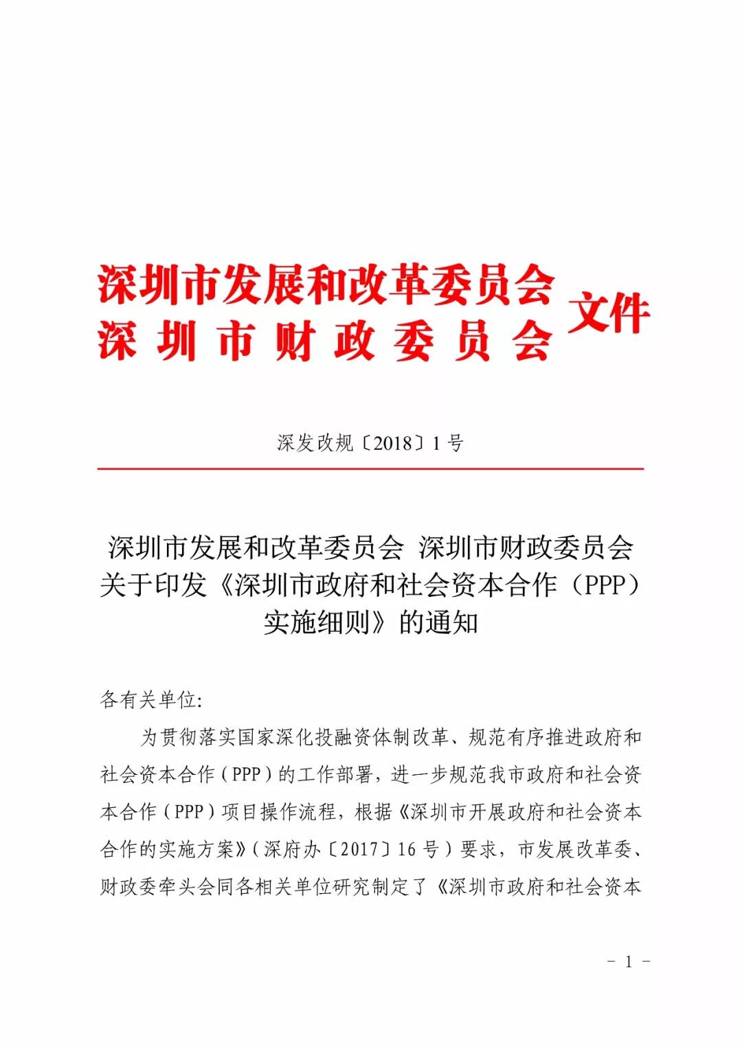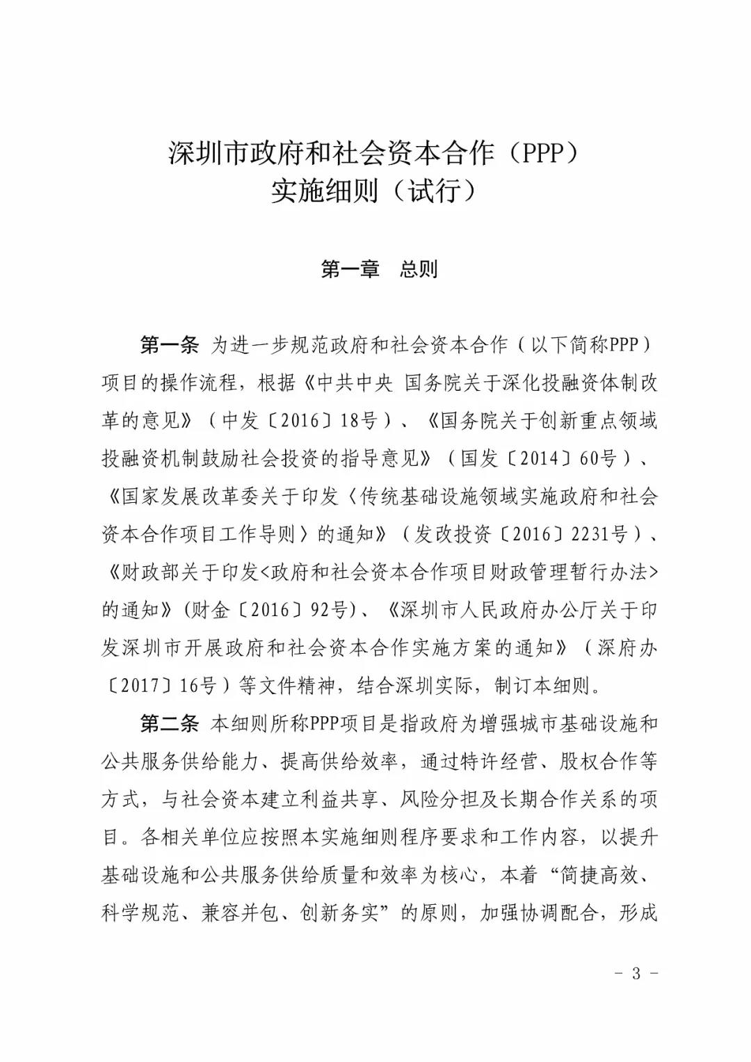 《深圳市政府和社會資本合作(PPP) 實施細則(試行)》正式發布