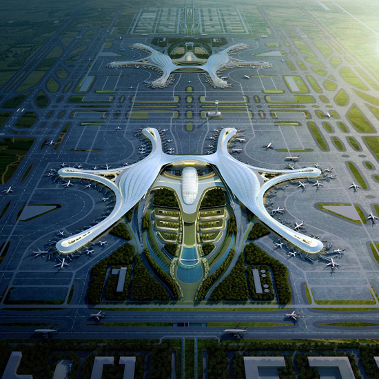 成都新機場定位“國內領先、世界一流”,全面建成后將成為中國西部第一、具有國際競爭力的國家級國際樞紐門戶,也是集酒店、辦公、餐飲、購物、會展、文娛、保稅、醫療為一體的超大型城市交通綜合體。中建西南院牽頭的聯合體以原創方案中標,設計采用成都標志“太陽神鳥”寓意,以智慧、人文、綠色為設計理念,實現了與周圍環境、功能及文化的充分融合。