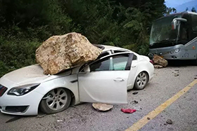 ▲突如其來的地震災害,導致道路塌方、車輛被砸
