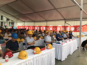 出席會議人員共分為四批現場進行觀摩,通過實物樣板、工法展示、實測實量、管理措施、技術管控、文明施工等幾大方面同各級主管領導和兄弟單位進行交流學習。