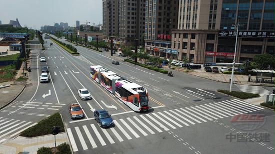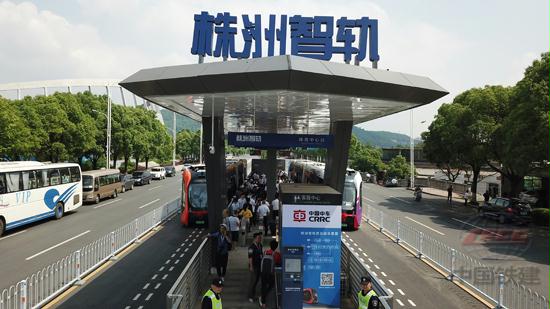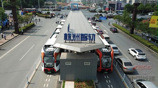 鐵四院副總工程師傅萃清介紹,株洲智軌示范線具有以下顯著技術特點:一是示范線全線不設鋼軌,可直接利用城市道路,借助地面標線,通過先進的自動循跡與軌跡跟隨技術,實現車輛在虛擬軌道下的類軌道行駛;二是全線車站均采用地面路中島式站,站臺寬度4.85m,在運用現代材料進行模塊化設計的同時,充分考慮了地域性和人文性,展現株洲市歷史文化和人文底蘊;三是智軌車輛采用快充動力電池供電,全線不設接觸網,在體育中心站利用車站兩側上方的充電軌進行充電;四是采用半共享路權方式,智軌列車到達路口時,通過地磁感應,調整信號燈,保證車輛行駛時綠燈亮起。
