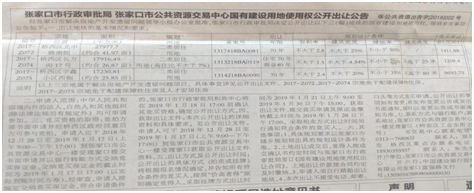 國有建設用地使用權公開出讓公告(張家口日報)