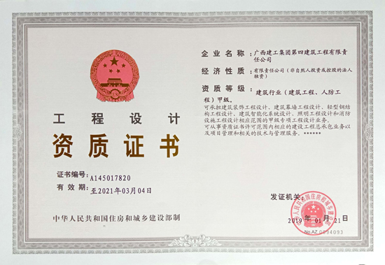 1月24日,廣西建工集團第四建筑工程有限責任公司從國家住建部捧回了“建筑工程施工總承包特級資質證書”及“建筑工程、人防工程專業甲級設計資質證書”,擁有該領域最高通行證,標志著廣西建工四建成功晉升全國建筑施工行業特級梯隊。