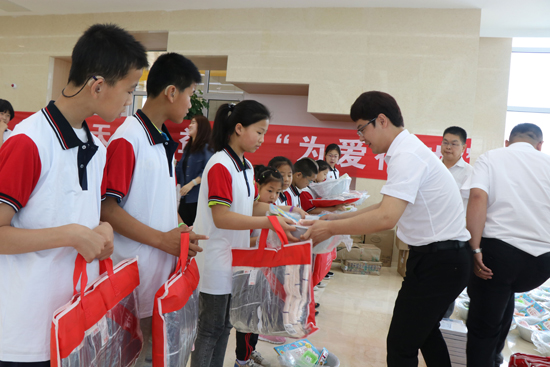 在特教中心的一樓大廳,孩子們排著整齊的隊伍向大家問好,孩子們稚嫩的小臉上難掩喜悅之情,涿州市殘聯理事長舒濤與天保集團副總經理李國棟親手為孩子們送上禮品,希望孩子們勤奮學習、快樂生活,將來成為國家的棟梁之才。隨后,各代表隊隊長為孩子們送上臉盆、畫冊、夏涼被等物資,孩子們禮貌的接過禮物,并用手語表示了感謝。
