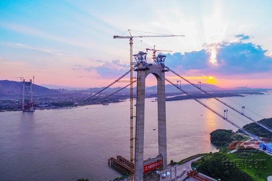 近日,中鐵大橋局一公司參建湖北棋盤洲長江公路大橋貓道鋪設完成,兩條長1805米寬4米的空中通道連接了兩對隔江相望的主塔與錨碇,主纜架設指日可待。該橋主跨1038米,屬于地錨式懸索橋,為中國鐵建最大跨度懸索橋。貓道是主纜系統施工作業的空中平臺,離江面最低處58米左右,在主纜及上部結構施工中不影響長江正常通航。