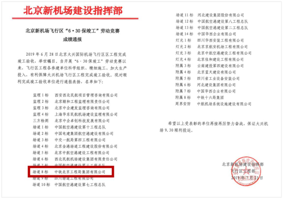 8月8日,北京新機場場道工程8標段項目部榮獲指揮部“6·30??⒐?rdquo;勞動競賽通報表揚。對中鐵北京工程局上下在“決戰6·30”勞動競賽中辛勤付出的全體參建人員表示肯定和感謝,對央企的社會責任和擔當表示敬意。