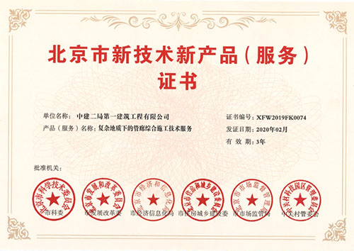 5月29日,中建二局一公司“復雜地質(zhì)下的的管廊綜合施工技術服務”順利通過認定, 榮獲“北京市新技術新產(chǎn)品(服務)”證書,這為公司申報2021年高新技術企業(yè)提供有力的支持。