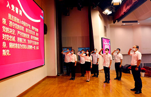 不忘初心、勇擔使命,紅旗漫卷、砥礪奮進。中建一局二公司領導班子,總部、基層黨支部共同錄制七一專題視頻,以不同形式向黨表達無限忠誠與熱愛之情。第一大項目部黨總支副書記、整形醫院項目黨支部副書記張鵬分享奮戰12天,不負使命建成抗疫工程的戰疫故事。公司領導班子代表為新黨員代表佩戴黨徽,新老黨員共同神圣宣誓。公司全體黨員共同唱響《沒有共產黨就沒有中國》,共同慶祝中國共產黨99周歲華誕。