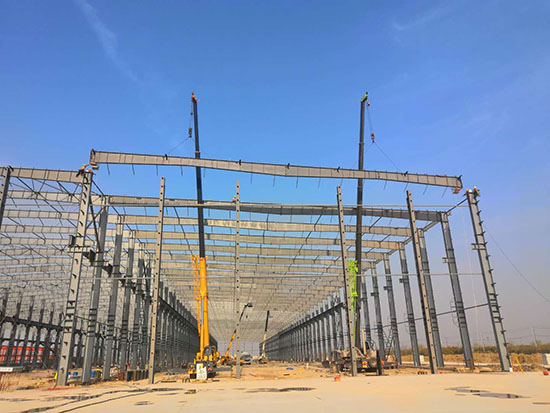 江蘇鑫慧風新能源項目,位于江蘇省鹽城市阜寧開發區,由鋼結構成型車間及附房、后處理車間及附房、原材料庫房三部分組成,總建筑面積為11萬平方米,于2019年11月開工建設。