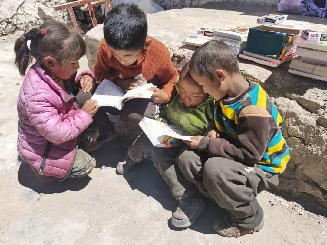 ▲西藏日喀則市昂仁縣切熱鄉(xiāng)小學(xué)學(xué)生拿到捐贈的課外書興奮地立刻翻閱起來