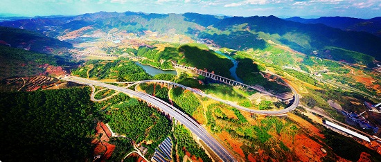 晉紅高速公路還特別利用云南高原山地地勢(shì)的優(yōu)點(diǎn)融合到隧道群與大中型橋梁建設(shè)的成品中,努力踐行中電建路橋集團(tuán)“建造比人的生命更長久的建筑藝術(shù)”的企業(yè)理念,力求建造一處建筑與生態(tài)環(huán)境緊密融合的高速公路。北城立交也突出了建筑與自然環(huán)境相協(xié)調(diào)的特點(diǎn),優(yōu)美線形完全融入地形條件,草木蔥蘢,行車舒適,為當(dāng)?shù)孛癖娊ㄔ炝艘惶巸?yōu)美的文化線、風(fēng)情線、旅游線,這建設(shè)成果正是對(duì)全體建設(shè)者的回報(bào),正是中電建路橋集團(tuán)聯(lián)合體孜孜不倦的追求,才有了如今優(yōu)雅美觀的高速公路。