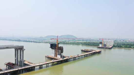 天氣晴朗,熾熱的陽光在水面上不住跳躍,往來如梭的輪船滿載貨物,從江面中心航線駛過,留下一圈圈波紋。在輪船競渡的旁邊,一座高達203米共37節的索塔正在施工建造,節節向上攀升。這是由中國電建路橋投資建設的中開高速江門段最長大橋的施工場景,也是素有“五邑僑鄉”之稱的江門一條即將連接廣東省東西橫向的一條新建高速公路。