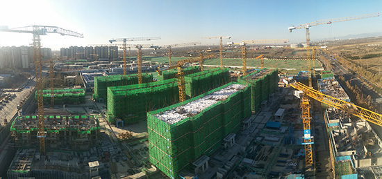 5分鐘裝一塊樓板、6天干一層樓……在中建二局三公司北京大興區魏善莊鎮金茂悅工程現場,工具式施工平臺正緊緊攀附在樓外墻,輔助搭建著主體結構施工。這個由15棟樓組成的龐大建筑群,正在向即將到來的竣工目標全力沖刺。作為北京市第一批全裝配式商品房,該項目在傳統裝配式住宅單一方向構件做法上進行技術升級,將樓板、外墻、內墻、樓梯、空調板等豎向 與水平構件全部進行預制,真正實現了100%全裝配式住宅。