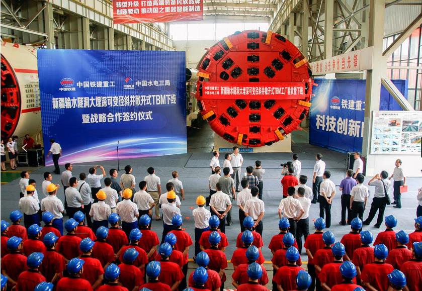 2016年6月,項(xiàng)目組參與研制的用于新疆ABH項(xiàng)目的國產(chǎn)首臺(tái)大埋深可變徑斜井敞開式TBM成功下線,填補(bǔ)了國內(nèi)空白,具有完全自主知識(shí)產(chǎn)權(quán),標(biāo)志著國產(chǎn)大型高端裝備制造領(lǐng)域取得重大突破。