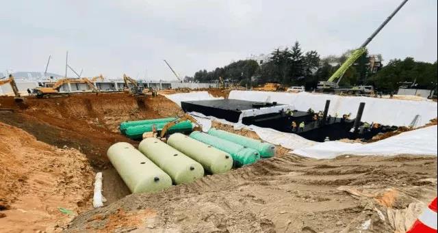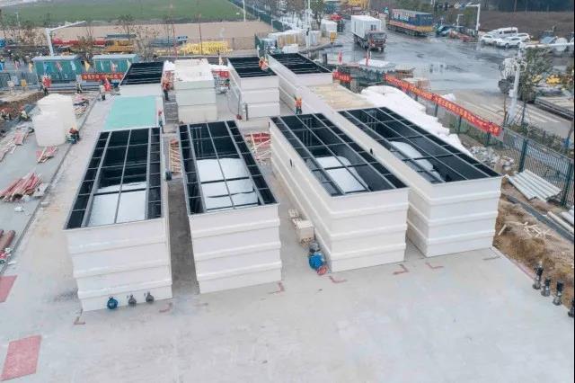 和火神山醫(yī)院一樣,雷神山醫(yī)院臨近黃家湖。為避免對(duì)環(huán)境造成污染,項(xiàng)目采取了同樣嚴(yán)格的防治措施。而雷神山醫(yī)院的整體面積比火神山大了將近一倍,床位增加了一半以上,擴(kuò)容、擴(kuò)量之下如何降伏“第五虎”?團(tuán)隊(duì)鋪設(shè)12萬(wàn)平方米的高強(qiáng)度防滲膜,24萬(wàn)平方米的土工布,確保污水不會(huì)滲入地下土壤或周邊水體。制定雨污水處理原則,醫(yī)護(hù)人員生活區(qū)污水直接排入市政管網(wǎng),病患隔離區(qū)污水則全部引入醫(yī)院污水處理站處理。院區(qū)雨水通過(guò)雨水調(diào)蓄池進(jìn)行收集后,消毒再排入市政管網(wǎng)。病患隔離區(qū)污水經(jīng)兩條污水管道收集后,依次經(jīng)過(guò)預(yù)消毒池、化糞池、調(diào)節(jié)池、MBBR生化池、高效沉淀池、折板消毒池,再排入市政管網(wǎng)。經(jīng)技術(shù)團(tuán)隊(duì)估算,醫(yī)患分區(qū)之后,雷神山醫(yī)院的污水處理量減少三分之一,提高了處理效率,降低了能源消耗。